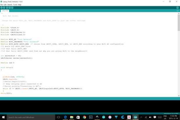 Descargar el código adjunto (primero) y abrirlo. A continuación, cambie la línea que dice "#define WIFI_AP"Su red"" y cambiar "Su red" en el nombre de tu red wifi. Hacer lo mismo con la línea de código después de eso, pero cambiar "Tu contraseña" la contraseña a tu red wifi. Ahora, subir a Linkit uno. Abrir al monitor serial y copiar la primera dirección IP que se muestra como lo necesitará más adelante.