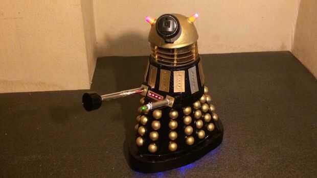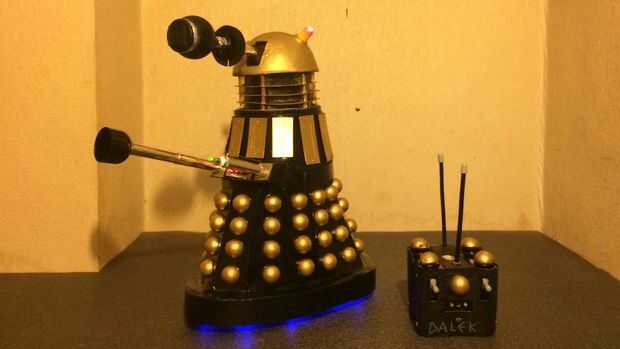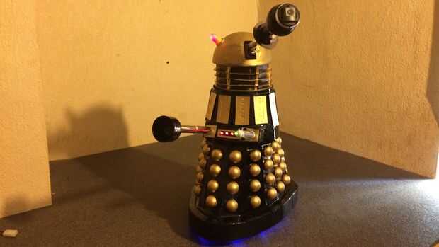 Ahora hemos casi terminado, echa un vistazo en el último paso para algunas reflexiones finales y algunas fotos finales de Darlek BOB mostrando sus nuevas luces en la oscuridad, incluso disparar su arma láser.