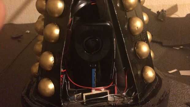 Entonces descargué un soundboard creador aplicación desde la app store, encontró algunos Dalek voz muestras en línea y se registrará a la caja de resonancia de la bobina vinculado el teléfono al altavoz, abrieron la aplicación y comenzaron a presionar los botones para hacer que BOB habla con las palabras y frases que grabé.