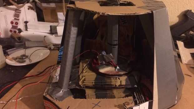 Hilo 4.) el motor los cables (para el tallo del ojo) junto con el cable aéreo a través del orificio de la placa superior. (sería una ocurrencia tardía que puede hacer las cosas mejor enhebrar los cables en el eje del tubo de la torreta del tanque y a través de la parte superior)