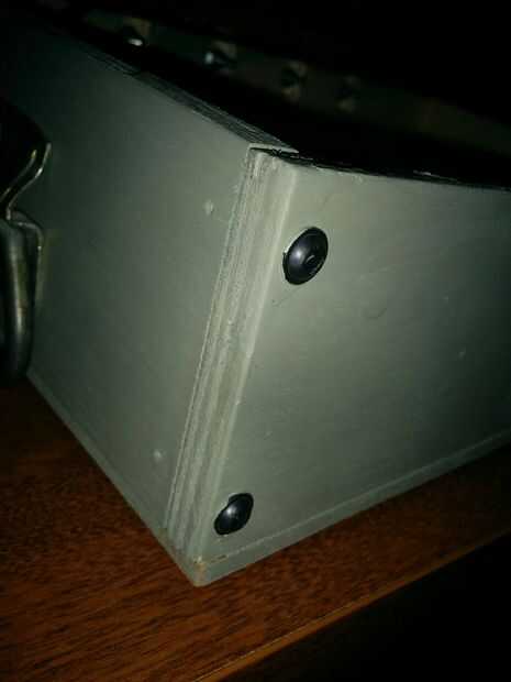 Cortar las siguientes piezas de la caja de la hoja de madera contrachapada & / desechos. Espesores de 3/8" o 7/16" funcionan muy bien para los lados y la tapa. Usé un ~1/8 "tablero de partícula de la parte inferior, como perforado, pero sin los agujeros. No enumero la lista de piezas, el tablero más grueso trabajará muy bien.