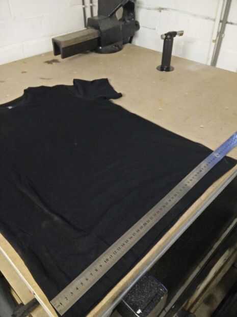 Medir el ancho de su camisa y cortar un trozo de cartón con ese tamaño. Meta su camiseta sobre el cartón. Debe ser un ajuste ceñido pero no estirar.