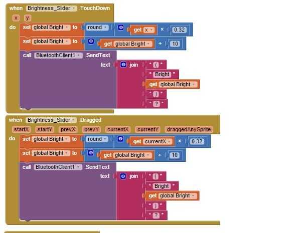 El control de la energía y el brillo es compartido entre las pantallas RGB y color temporales. En orden para el Arduino saber que LED de control, tengo que decirle que pantalla se carga. Una cadena de texto en el formato (pantalla)? es enviado por bluetooth a su teléfono usando el comando BluetoothClient1.SendText.