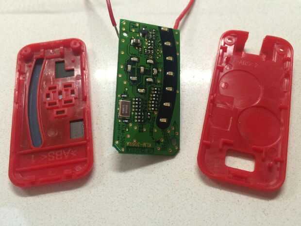 A continuación, observe los dos cables que sostienen el tablero del circuito a la batería de voltio 3 a través de la cubierta plástica. Usted debe cortar estos cables como cerca de la carcasa de plástico como sea posible, dar su espacio para los cables una vez que se separa.