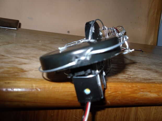 Lugar el tornillo en lugar seguro, usted necesitará más adelante. Coloque el centro del cuerno sobre el orificio que ha perforado. Marca los puntos sobre la PVC donde se extienden los agujeros más alejados. Taladre los cuatro agujeros después de sacar el cuerno por supuesto. Posición de la bocina en el PVC y tomar pequeños corta clips y ponerlos a través de los agujeros, doblando los extremos en para fijarlos en su lugar. Ahora debe tener el cuerno atrapado en el interior e inmóvil. ¿Hacer? Un lobo tan inteligente! Ahora querrá marcar dos agujeros cerca uno del otro en el borde exterior de la tapa. Perfore también ésos hacia fuera. Estos agujeros servirán como lugar para sus extremos de cables de freno de bicicleta. Unir el cuerpo principal del servo a la corneta y atorníllelos nuevamente juntos. Ahora para pasar que el cable. Tomar sus alicates de punta delgada y doblar los extremos del cable en para hacer una esquina aguda. Poner los extremos en los dos agujeros que perforó y toma más clips pequeños y fuerza en los orificios, así. Doblar los extremos para mantener el cable en su lugar. Desea que el servo para estar cerca de su cola pero sin tocar la columna vertebral. Deje un espacio de pulgadas. Ahora para algunos equipos de soldadura! ¡ Yay! (Tenga en cuenta que un soldador puede llegar a alrededor de 800 grados Fahrenheit por lo tanto si eres nuevo en soldadura por favor por favor por favor que alguien con más de experiencia de hacer la soldadura o pídale a alguien que guiará a través de IT)