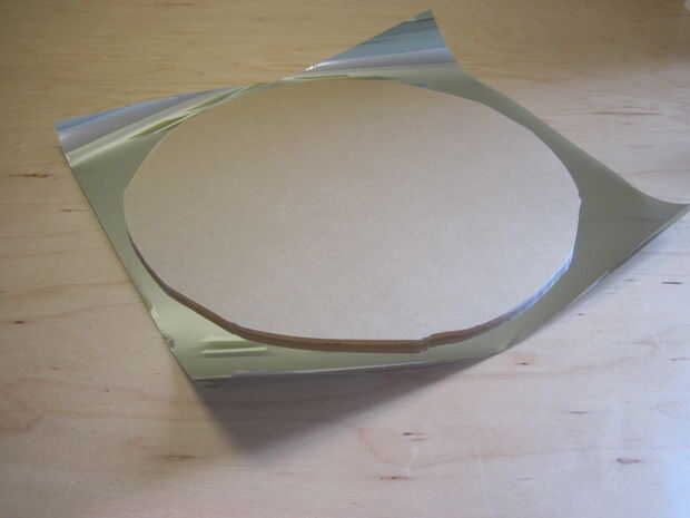 A continuación usted tendrá que cortar un trozo de tinte de espejo que es más grande que la pieza de acrílico - esto significa que puede manejar el material adicional en los bordes sin preocuparse por las manchas de huellas dactilares.