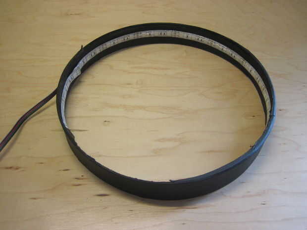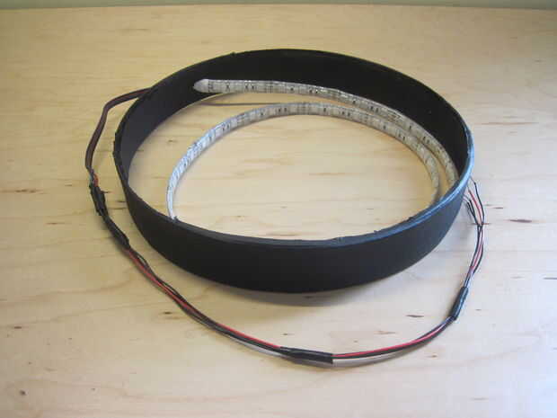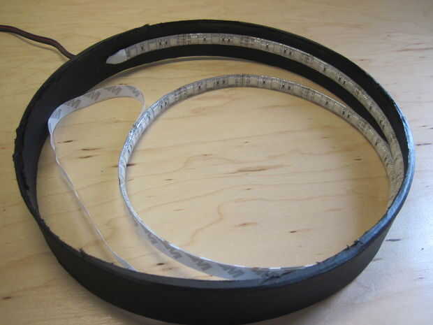 También tendrás que esperar que la circunferencia de la tapa coincida muy bien con un múltiplo de la longitud de estos segmentos 3-LED (aproximadamente 1 15/16"), de lo contrario usted podría terminar con una brecha o un poco de superposición entre su primer y último LED.