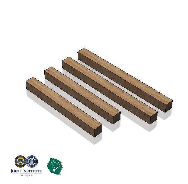 Cortar 20 mm * 20 mm barras de madera en dos barras largas de 25cm y dos barras largas de 20cm. Cortar las barras de 25cm y las barras de 20cm por la mitad a lo largo de la dirección de la longitud. Ahora son 20 mm * 10 mm * 25 cm y 20 mm * 10 mm * 20 cm. (Figura 2.1, figura 2.2)