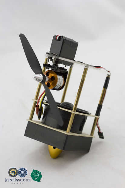 Punto de la hélice en la parte posterior del aerodeslizador. Fije la torre de la energía para el cuerpo principal con tornillos.