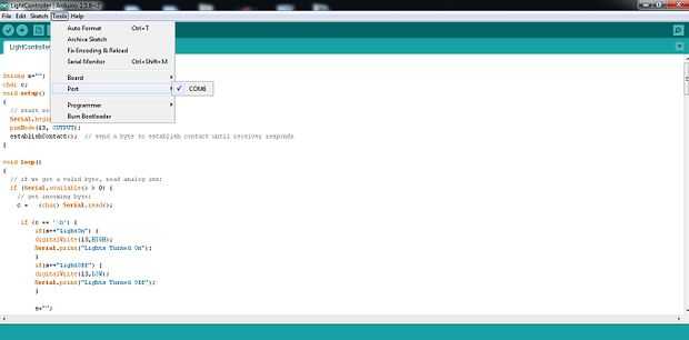 Asegúrese de que está seleccionado el puerto com correcto (el puerto asignado a Arduino). Monitor serie abierta con el IDE de Arduino.