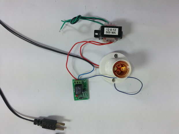 Conecte el otro empalme (uno del paso se muestra en conjunto 2) placa de relé. Esto completa la conexión de la placa de relé para el portalámparas.