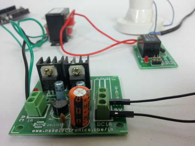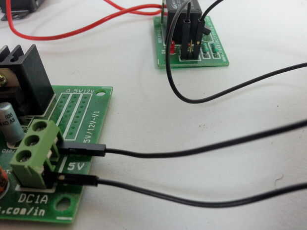 Conecte la salida de la Junta de suministro de alimentación (12v y 0v) a la entrada de placa de relé. También conectar el GND de la fuente de alimentación con Arduino GND.
