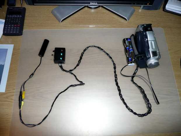 La imagen de abajo muestra la cámara de la bala y el control remoto junto con el pack de cámara y la batería principal.