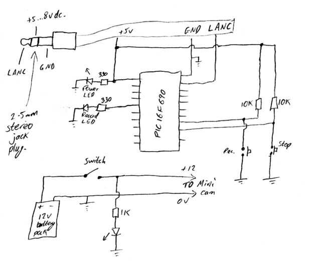 -La Minicam es alimentado de una batería de 12 voltios a través de un interruptor