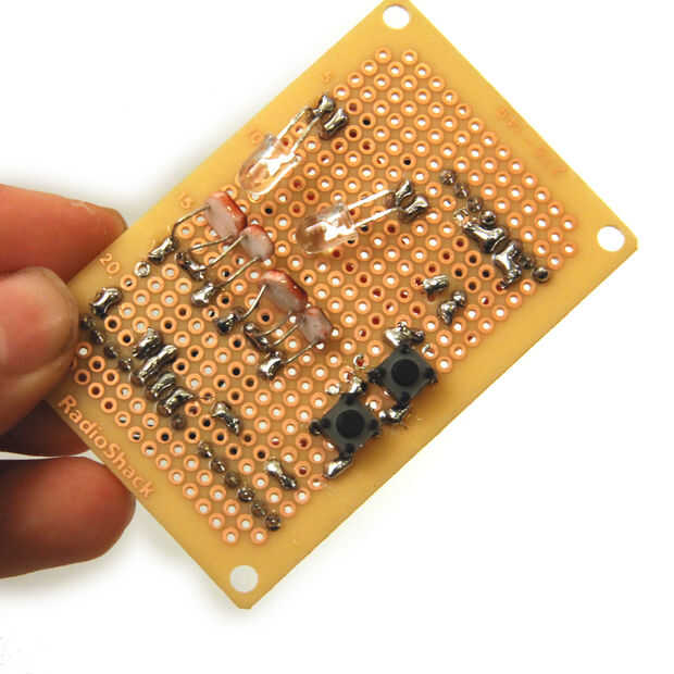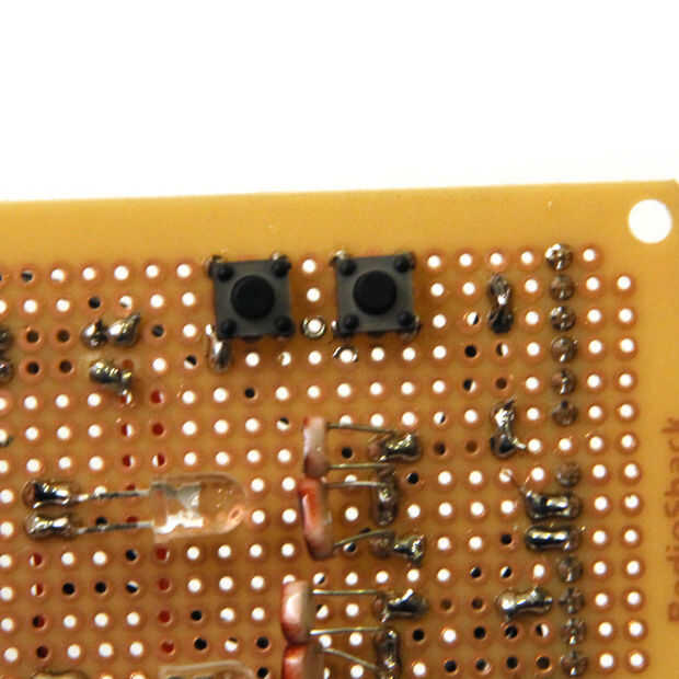 Tacto fije dos interruptores a la protoboard para que cada uno proporciona 5v el LED y el circuito resistor limitador actual (pasando por alto la necesidad de una señal de 5V de arduino los pines 2 y 3).