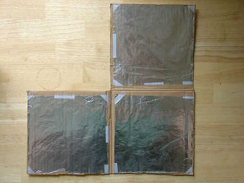 circuitos RC, cada circuito de distancia en una dimensión. Encontré que la manera más fácil de organizar tres placas capacitivas para ello está en la esquina de un cubo. Cortar la esquina de una caja de cartón en un cubo de 8.5" y cortan algunos aluminio para encajar como plazas un poco más pequeñas. Cinta en las esquinas los mantiene en su lugar.