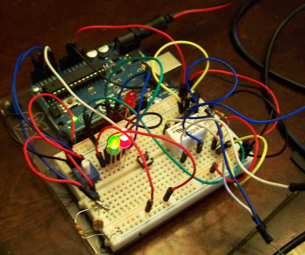 Originalmente planeaba en soldar el circuito todos juntos y montaje en un contenedor de algún tipo con tomas de audio de 1/4". Los flashes desechables se montarían en algún tipo de cuadro que me permitió dirigir la luz ya que sería capaz de luces de estudio y tendría los zócalos de 1/4" en ellos, así que me Conecte los flashes esclavo para la unidad de control de arduino con un cable de guitarra estándar, pero en el momento de escribir este ible no he llegado a él. ¿Así que tal vez alguien tendrá una idea mejor?