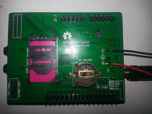 He leido por ahí que el escudo GPRS puede tomar hasta 2 corrientes de oleada A, no estoy seguro si esto es cierto. Por esa razón decidí alimentar externamente. Hay un pequeño interruptor cerca de la antena que le permite elegir cómo desea energía el escudo GPRS.