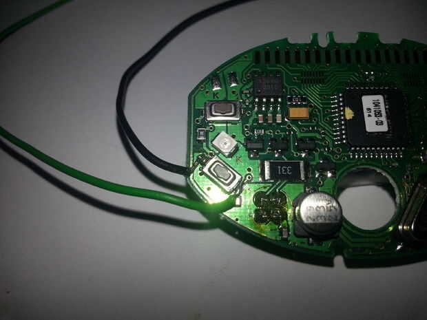 Necesitará dos cables al pulsador "llama" de la soldadura. También necesita hacer un agujero pequeño en la contraportada de los dos cables.