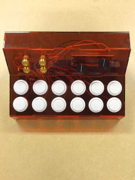 Antes de colocar las piezas con los botones de arcade y los potenciómetros, cuenta el Arduino pegado abajo. Esto es opcional. Sin embargo, sería más fácil conectar el cable USB para Arduino. Ahora, conecte las piezas que tienen los botones de arcade y los potenciómetros en la base. Si usted quiere ser capaz de sacar estas piezas, no pegamento caliente les. Si desea pegar estas piezas hacia abajo, se puede.