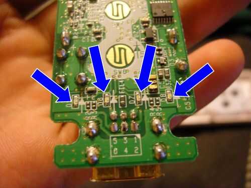 Como dije anteriormente he movido el primer LED (primero a la izquierda de aquí) y sustituido por uno rojo.