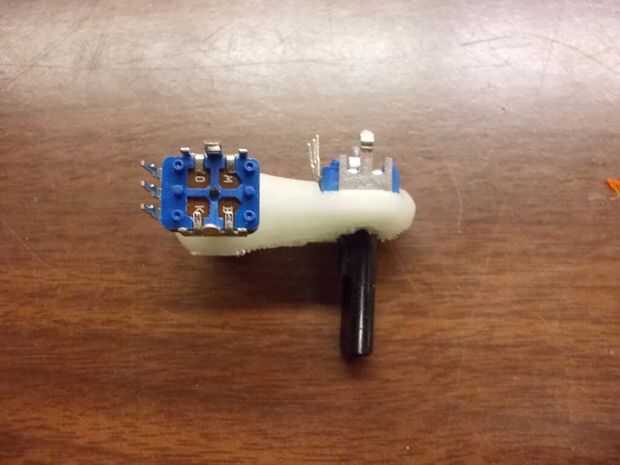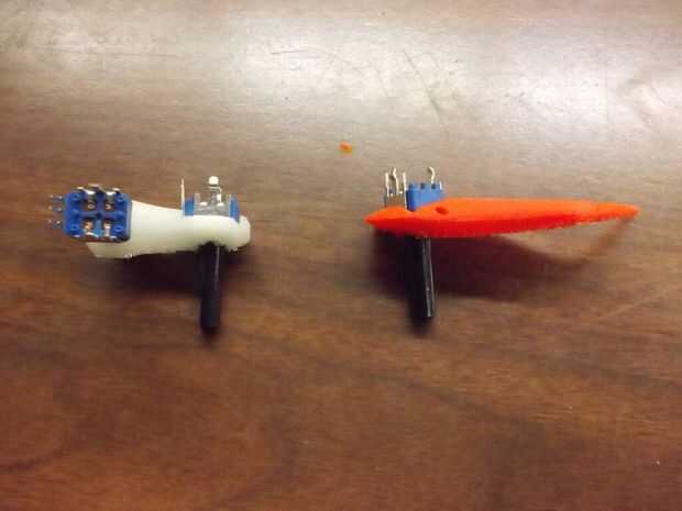 - Ate el pedazo Leg2 la pieza Leg1 aplicando un poco de pegamento caliente y deslizando el potenciómetro en la pieza Leg1 a través de la pieza Leg2.