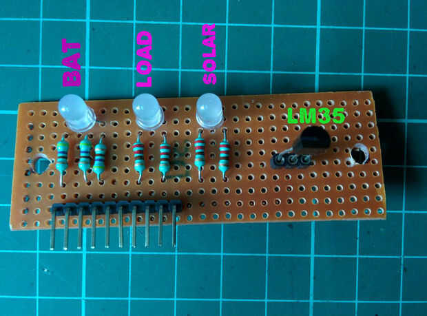He mostrado dos led en mi esquema. Pero he añadido un tercer led (bi color) para indicar el estado del panel solar en el futuro.