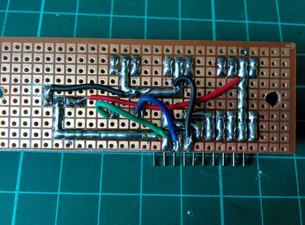 Luego unir los puntos de soldadura los leds terminal a los encabezados. Se puede pegar una pegatina con el nombre de pin para fácil identificación.