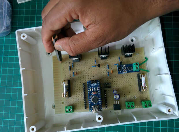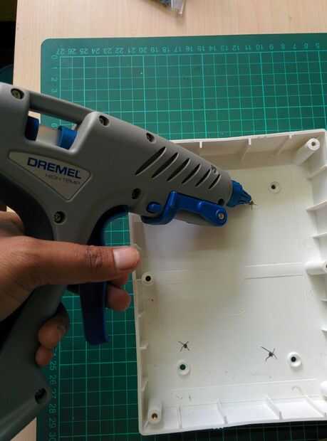 Coloque el tablero principal dentro de la caja. Un lápiz Marque la posición del agujero.