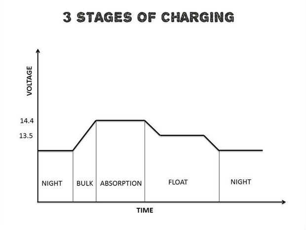 2. absorción: cuando la batería llega a la carga a granel ajustar tensión, el PWM comienza a sostener la constante tensión. Esto es para evitar recalentamiento y exceso de burbujeo la batería. La corriente se estrechará hasta niveles seguros, como la batería se carga más plenamente.