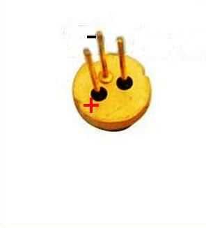 El siguiente paso fue soldar los cables a los terminales de LD. Tienes que comprobar lo que es de los terminales en la hoja de datos de LD (puede ser como se muestra en la foto, pero bueno se organizan de manera diferente). Me puse una funda de cable de encogimiento de calor del cable positivo para evitar el cortocircuito accidental con el negativo.
