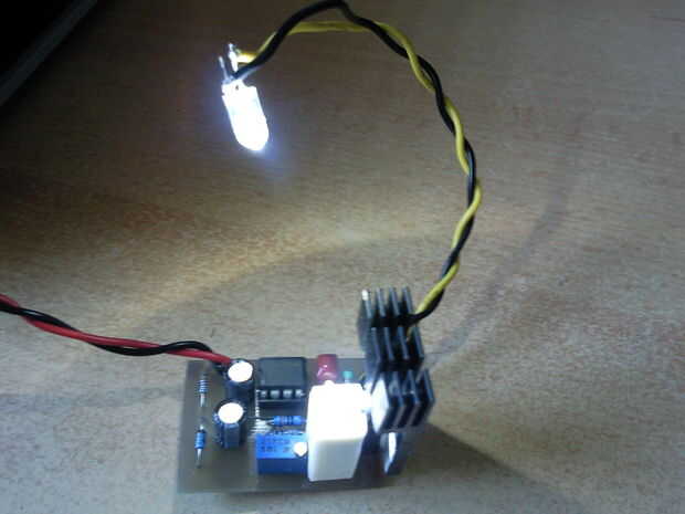 En cambio para conducir los diodos láser, el conductor presentó puede utilizarse también para la conducción de LEDs. La segunda imagen muestra el controlador cargado con LED blanco brillante y se hunde alrededor de 10 mA de conducción de corriente.