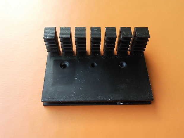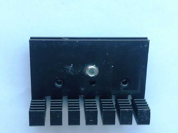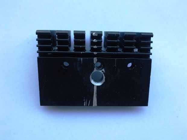 Porque gran corriente atraviesa el diodo láser, debe refrigerarse. Soportes de enfriamiento especiales están disponibles en el mercado (por ejemplo Ebay), pero he decidido hacerlo por mí mismo. Para ello he utilizado algunos materiales disponibles: dos disipadores de aluminio, una tuerca y un tornillo. Al principio hice un agujero en el centro de la nevera más grande. Después de eso he formado por el uso del archivo ronda sucedió exactamente a la LD colocada en su alojamiento original.
