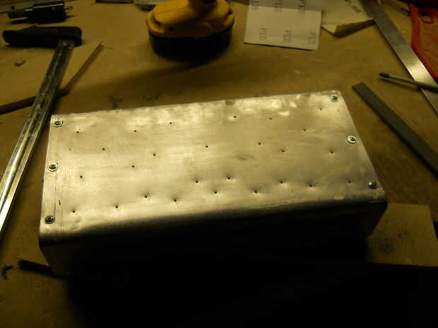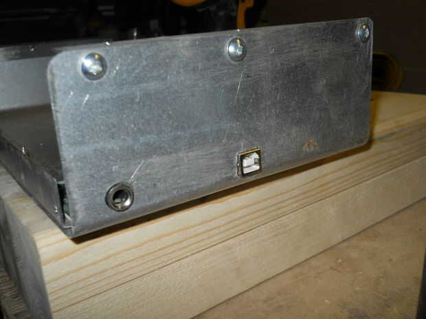 El agujero cuadrado para el USB fue cortado por Dremel, y perforado de la toma.