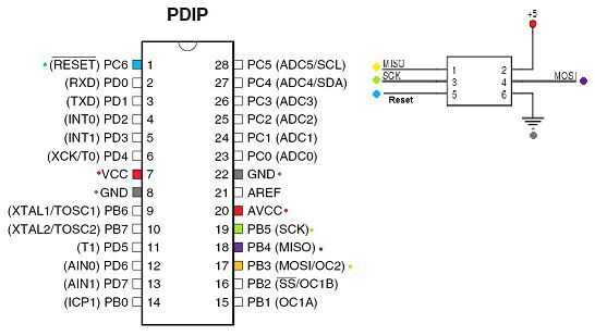 6 terminales deben conectarse de chip programador usb. Revise las imágenes de referencia.