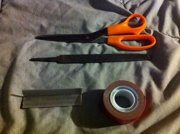Paso 1. Aplique cinta de montaje a los ángulos como se ve en la foto. Deje un pequeño espacio hacia las esquinas. hice a un lado a la vez.