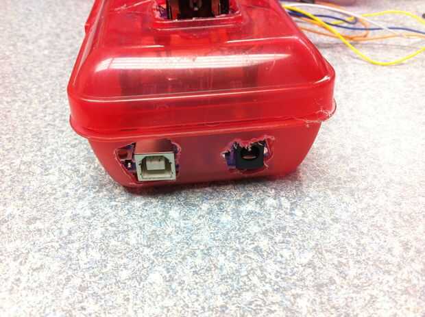 Antes de soldar, ver donde vas a poner todo. Tengo suerte porque cuando vi este cuadro en particular estaba pensando donde todo iba a ser lugar. Ir a Wal... o cualquier otro lugar y compre la caja, mi me costo $1,29. Usar cinta para temporal de la mayor parte de la cinta donde quería estar. Entonces yo cortar los agujeros con la herramienta dreamel. Los cortes no son limpios pero que van a hacer para el proyecto.