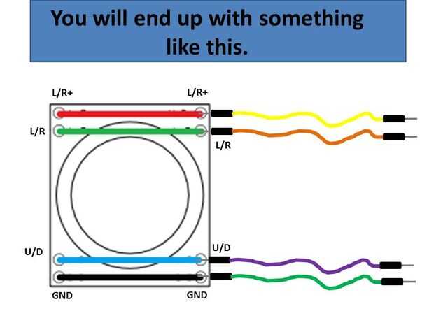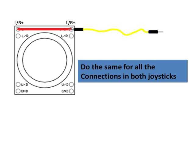 Conectaremos a las conexiones de la palanca de mando en pares para que se puedan comunicar mejor con el Arduino. (esta forma es mejor que en mi otro instructurable "el brazo robótico"
