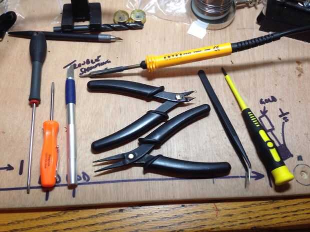 Por lo tanto se necesita... Una buena calidad de soldadura y soldadura. Pequeñas pinzas y tijeras para alambre. Philips pequeño y destornilladores planos. Un cuchillo. Controlador de torq T9 (puede utilizar T8 también). Una pistola de pegamento caliente. Una taladro/dremel con broca de 3mm y tal vez una toalla para limpiar el sudor de tu frente cuando se estresan!