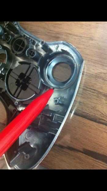 Será necesario abrir la carcasa y el taladro donde van los thumbsticks. Más agradable y fácil. Una vez que feliz luego pegue el telar en su lugar.
