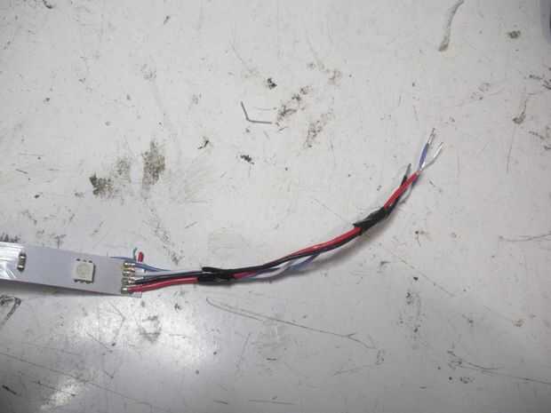 -Suelda alambre 22ga color a todos los contactos en los 3 Cabos de la tira de luz RGB.