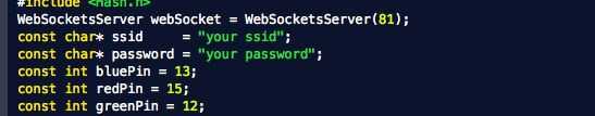 Aquí escuchamos si envía cliente "x" los valores que se utilizan para establecer el valor del LED rojo del RGB. Este valor se deriva de un cursor con min valor 0 o 255 máximo en cliente de servidor de web. Vamos a explicarlo en el siguiente paso. Desnudo conmigo. Así que estoy usando PWN al valor derecho analógico con conector de led rojo. La siguiente pieza de código es similar a 'x' parte, pero se encarga de valor azul pin y pin verde mediante la implementación de valores de z y y del cliente. Puede modificar el código para hacer lo que quiera. Las posibilidades son infinitas. Por ejemplo puede conectar un relé y luz casa luces encendido/apagado etc. también si desea enviar varios valores simultáneamente, puede enviarlo como JSON. Les recomiendo esta biblioteca a decodificar la cadena json del cliente.