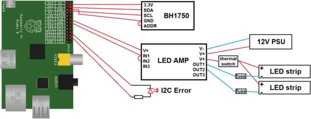 Fusibles se utilizan para proteger la línea de 12V (cada segmento de la tira LED es fundido, así que si un segmento se va al circuito corto entonces no causará un total por debajo de la fuente de alimentación).