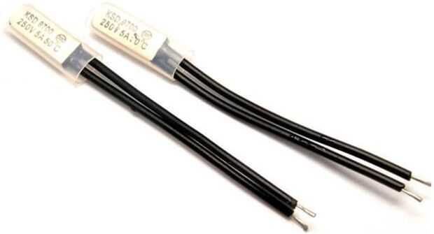 Interruptor térmico es normalmente cerrado y se pega (con grasa térmica) a disipador de calor de la tira LED. Si la temperatura del disipador de calor se eleva por encima de 50° C entonces simplemente abre el circuito y protege la tira de LED de sobrecalentamiento. Tipo de KSD9700 (50° C) fue utilizado. Si su temperatura sube por encima de 50° C, el interruptor térmico se abre y permanece abierto hasta que la temperatura cae por debajo de 35° C.