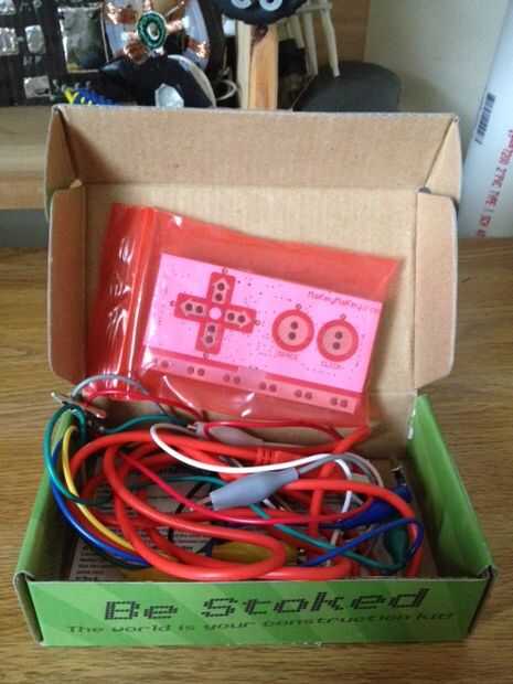 Haz tu makey makey fuera de la caja, mina vino con cocodrilo clips pero si no tienes cualquier 5 o 6 pequeñas funciona bastante bien.