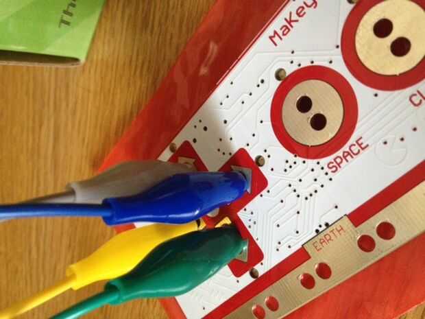 De MaKey MaKey es een handig hulpmiddel voor electronica-experimenten. Verander bijvoorbeeld alledaagse objecten en toetsenbord een de muis. MaKey MaKey een koop je als pakketje en bevat además de MaKey MaKey zelf een USB-kabel en krokodillenklemmetj