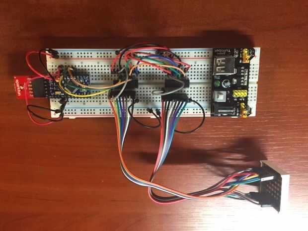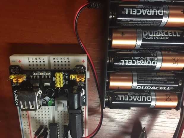 Para la fuente de alimentación usé la batería (baterías del AA del 5 x 1, 5V) y un módulo de alimentación breadboard (puesto a 5V).