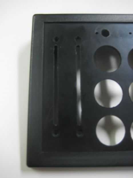 Ahora utilizar los archivos de divisor para quitar el plástico entre los agujeros que funcionan la longitud de la ranura de la corredera. También presentar suavemente los lados interiores de la ranura por lo que es tan recto y tan suave como sea posible.