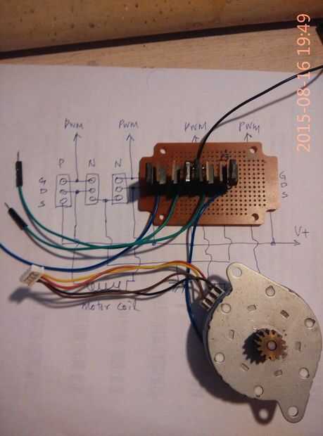 Consulte el enlace de https://www.arduino.cc/en/Tutorial/MotorKnob, usted puede encontrar el código y los detalles, conecte las líneas PWM a los pines de salida, las bobinas del motor y energía externa (puede ser de origen más 1 amperio), recordar el motor de pasos bipolar tiene dos bobinas con 4 líneas, 4 líneas es necesidades motor unipolar paso a paso a otro conductor.