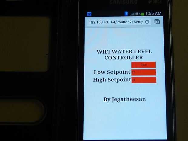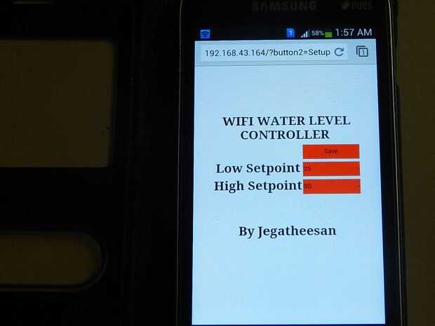 2) la pantalla muestra guardar botón, dos combo box con el valor actual del punto bajo y punto alto valor.